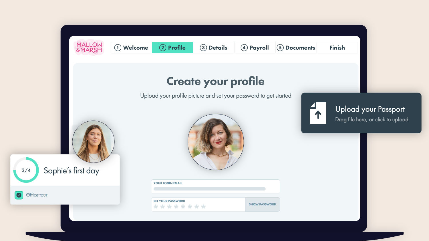 Paperless onboarding – no more forms to fill out and no more checklists in the corner of your desk; everything can be ticked off on the platform and remotely.